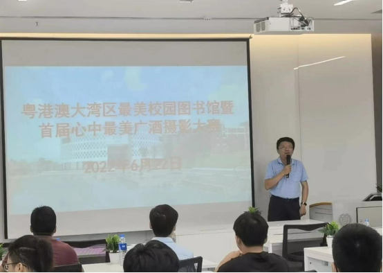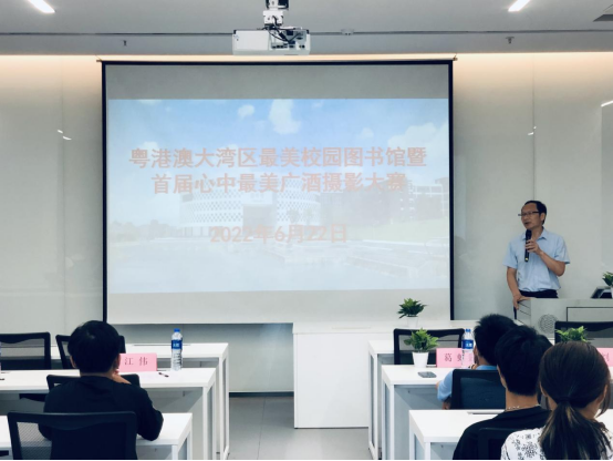 为深入开展美育教育,挖掘广酒校园之美,充分展示学校图书馆文化育人形象,6月22日下午,粤港澳大湾区最美校园图书馆暨首届心中最美广酒微摄影大赛决赛在图书馆多媒体中心如期举办。学校副校长葛虹、党委副书记江伟、党政办副主任刘路、学生处副处长殷松昌、招生宣传服务中心主任易冰琳及参赛师生代表参加了活动。