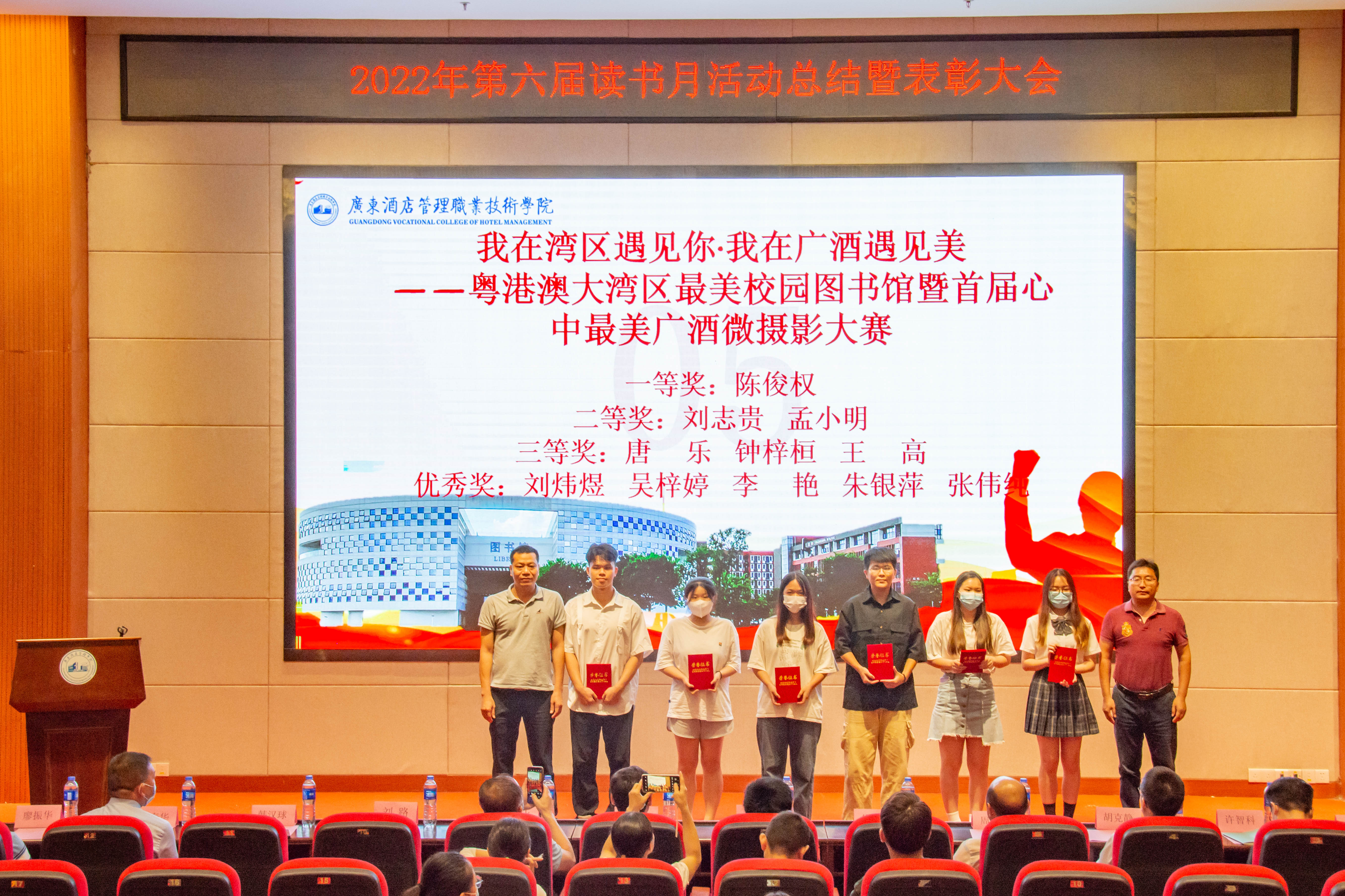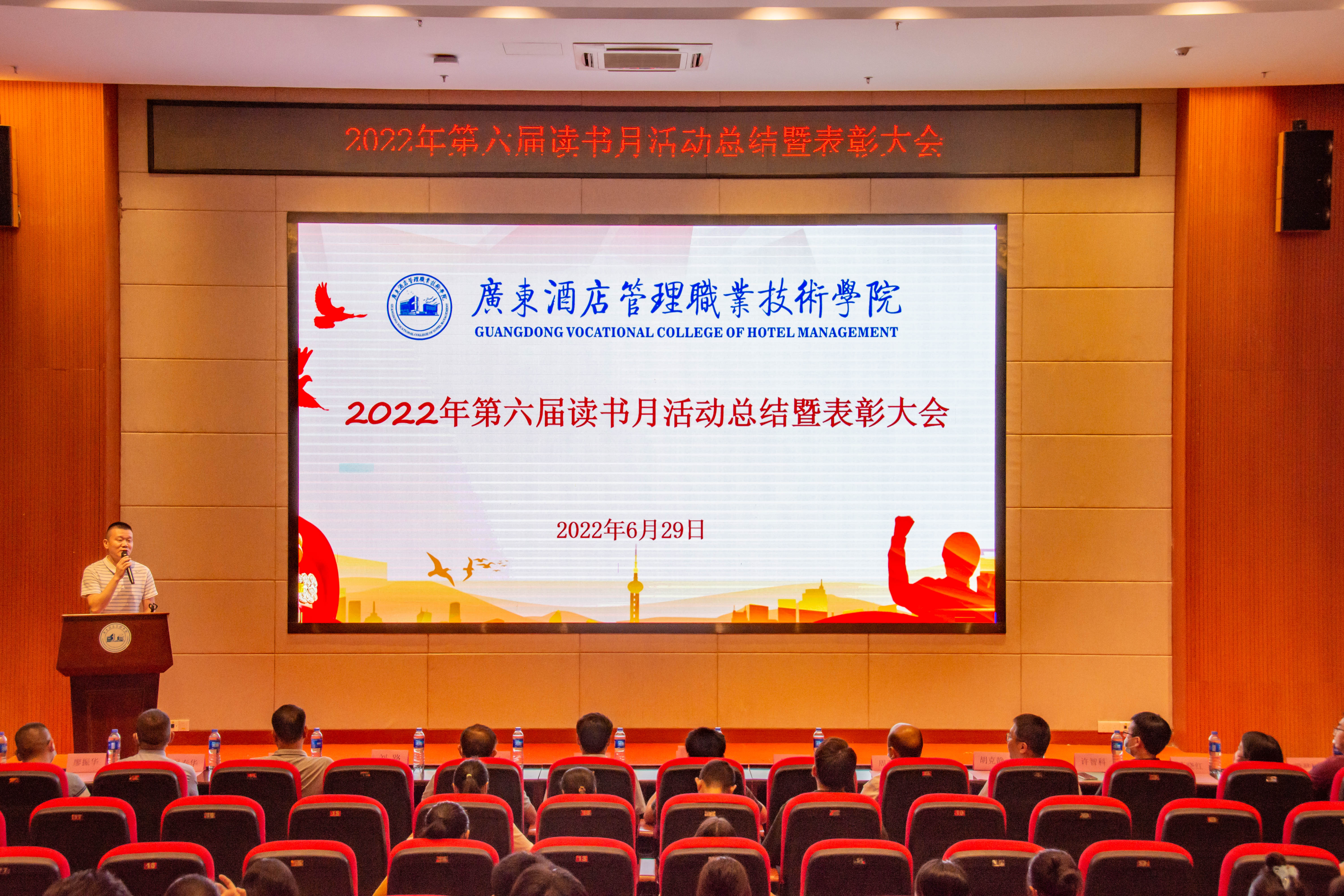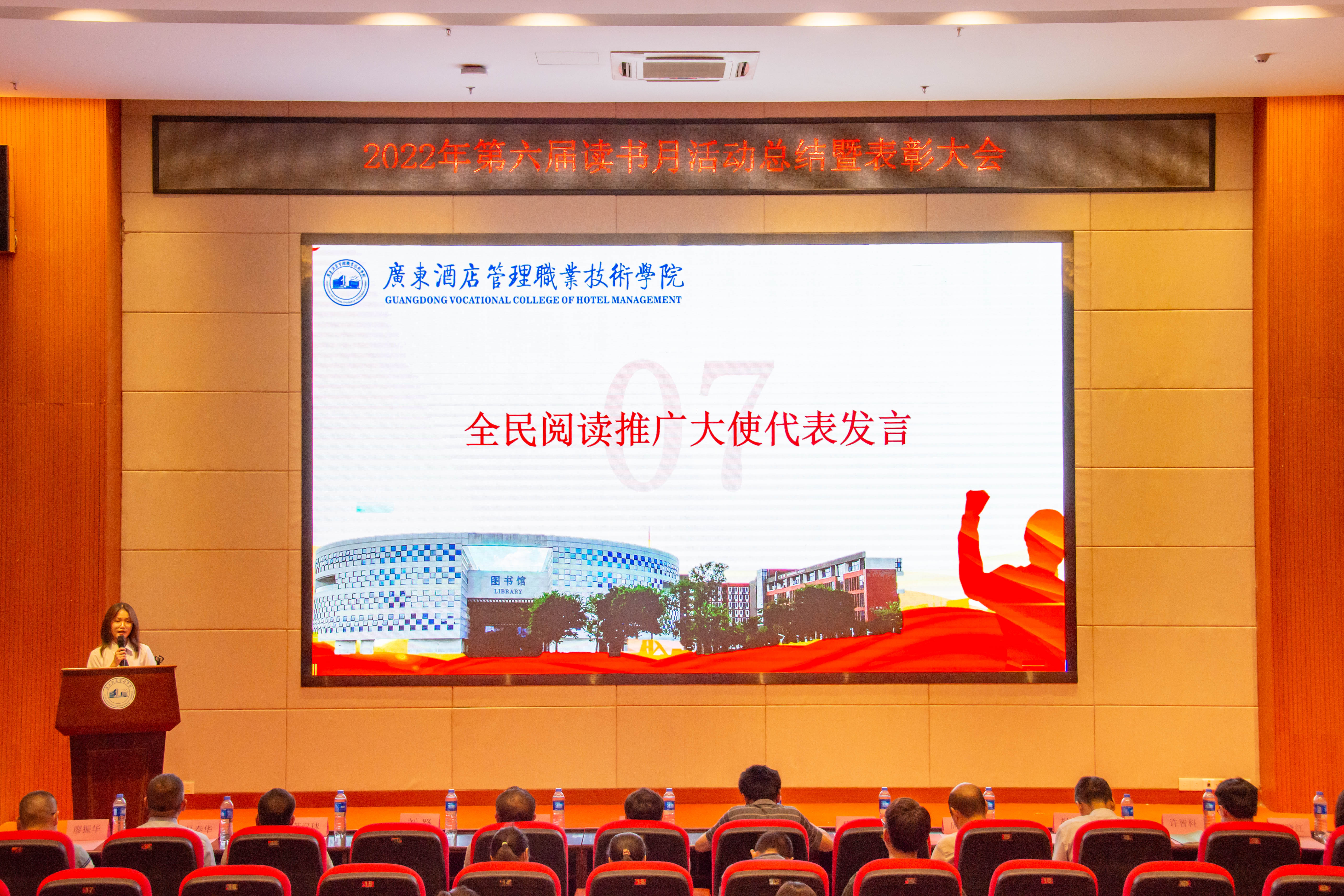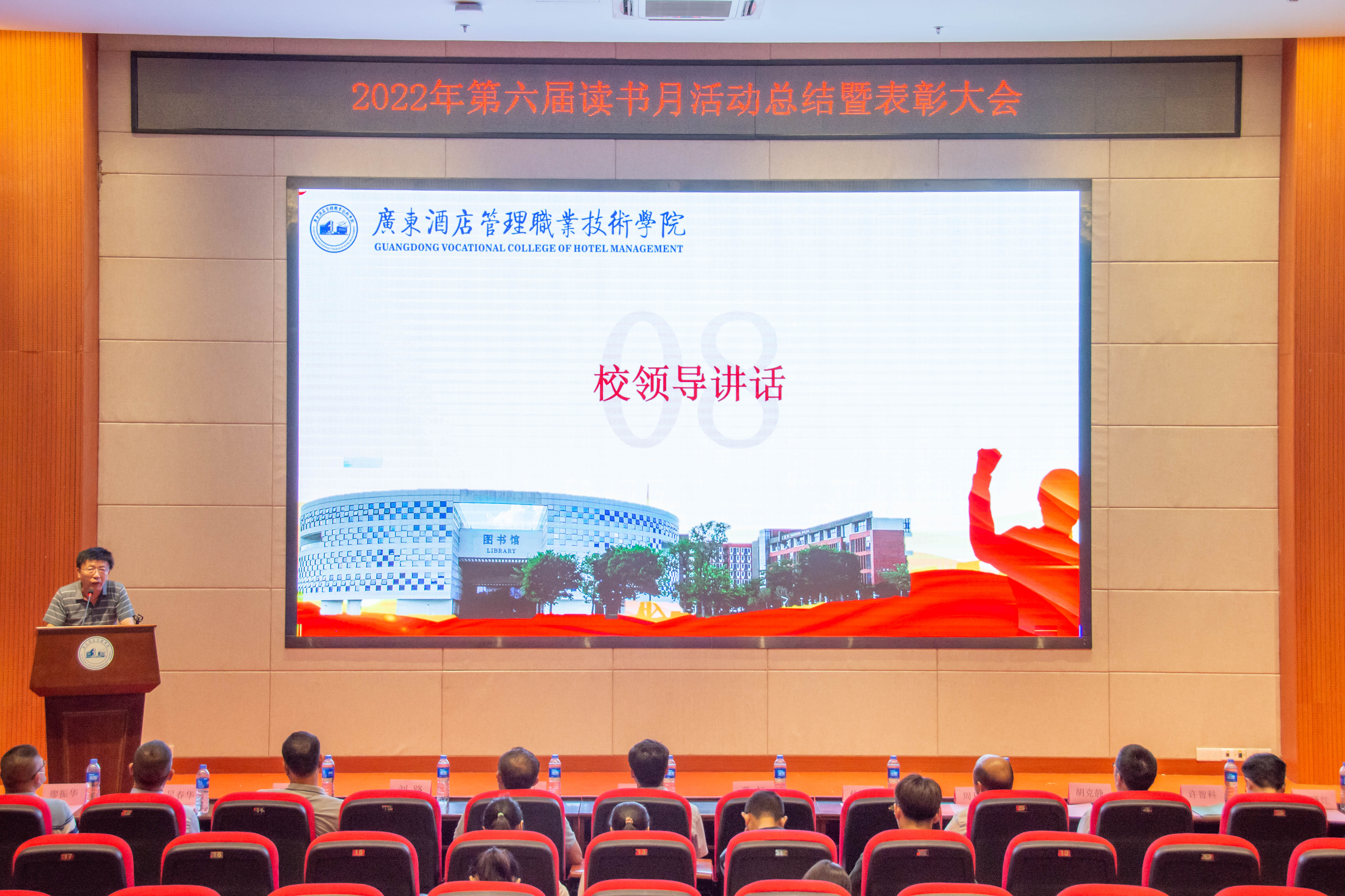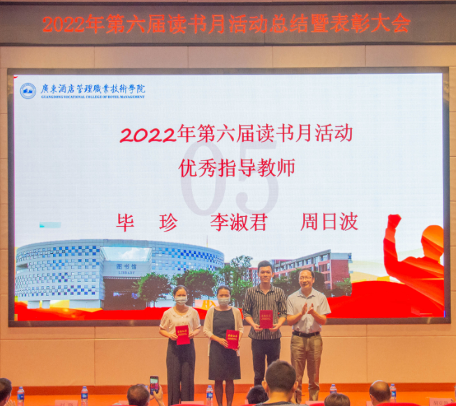 大会总结了第六届读书月活动并宣读了《关于开展2022年第六届读书月表彰活动的通知》(广酒〔2022〕36号)。自4月以来,在校党委指导下,在各职能部门及二级学院的大力支持下,第六届读书月活动成功举办了《传承红色基因·争做时代新人——2022年广东省高校图书馆“学问杯”影评大赛》等十余项子活动,全校师生广泛参与,达到了良好的育人效果。