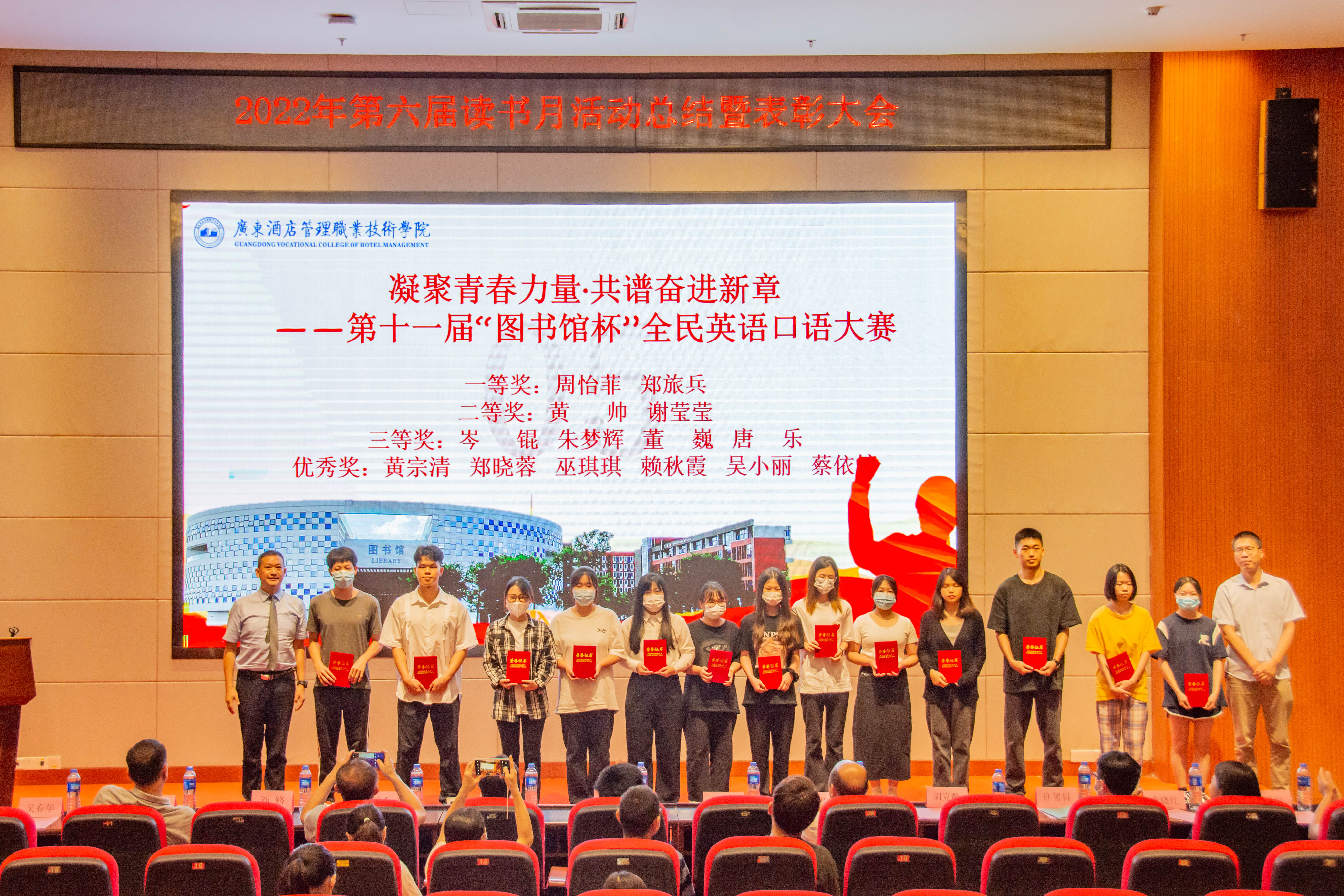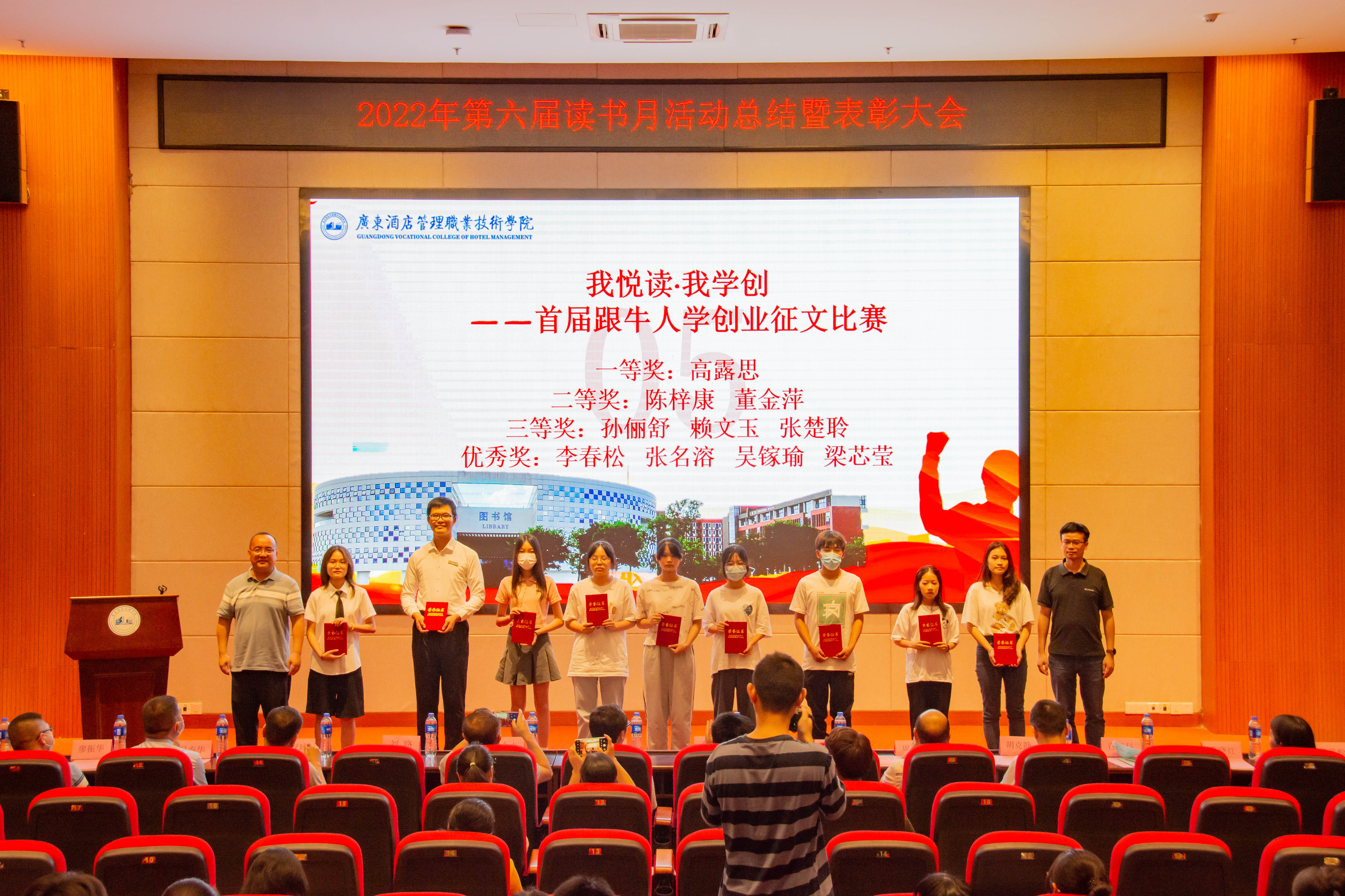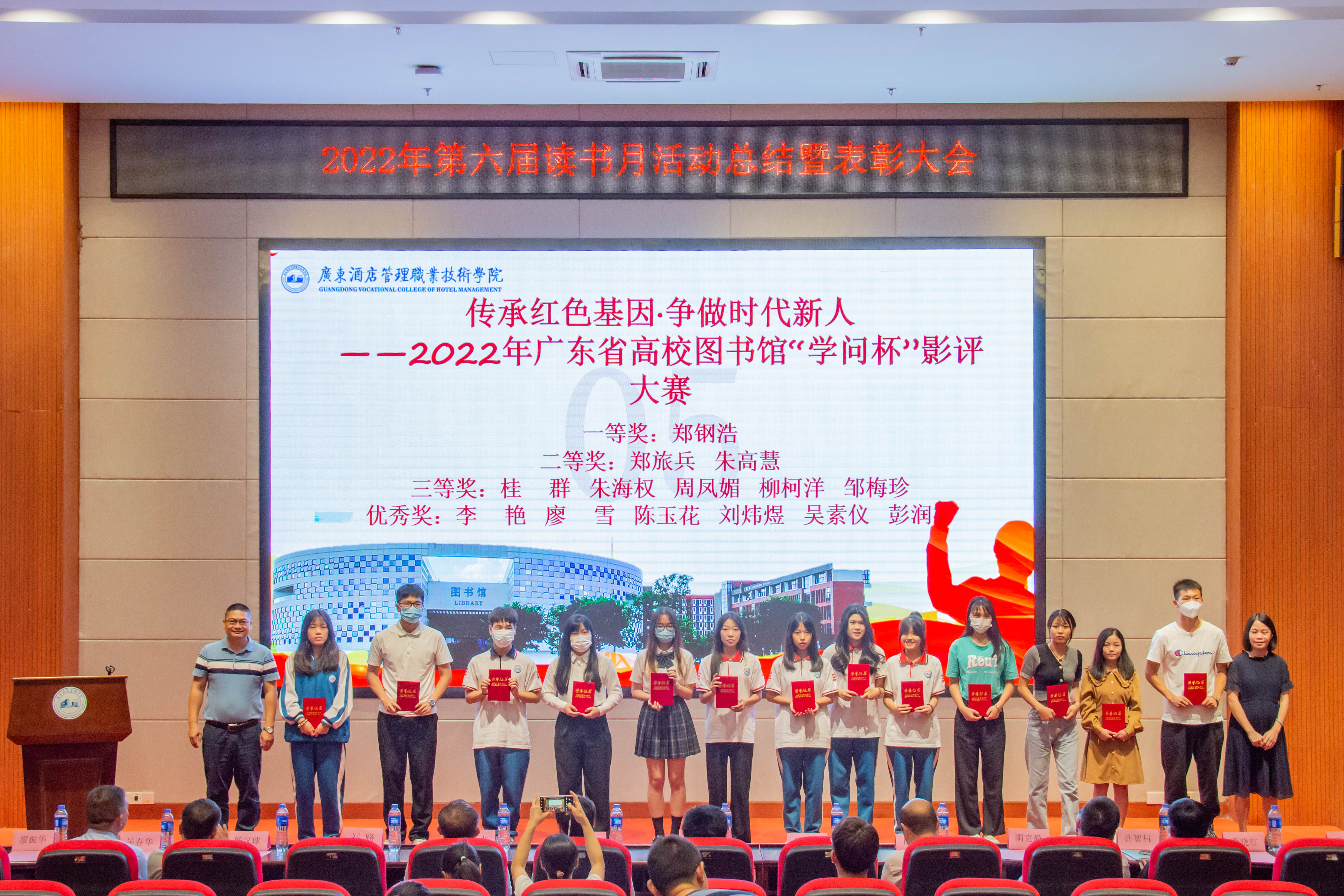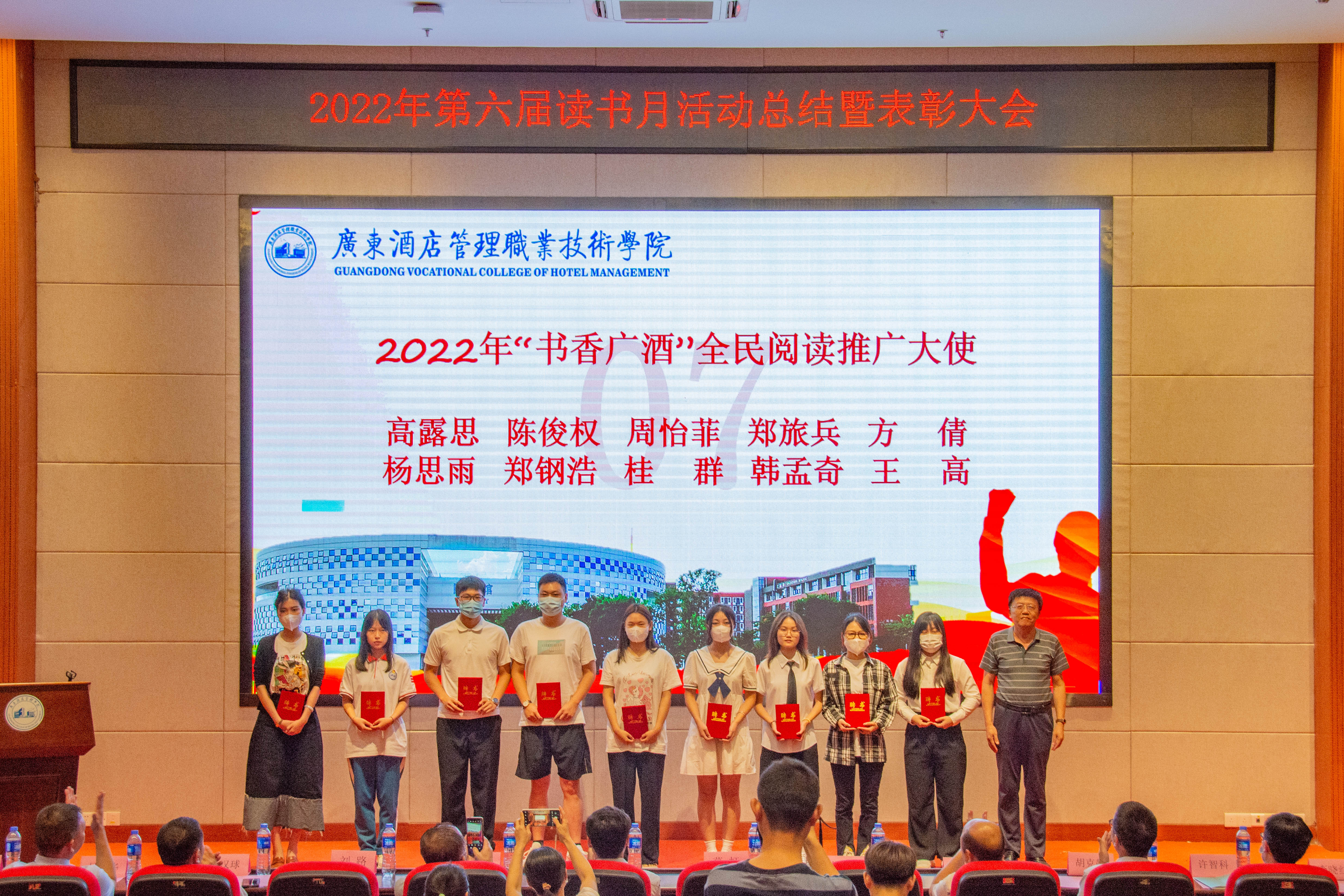 大会总结了第六届读书月活动并宣读了《关于开展2022年第六届读书月表彰活动的通知》(广酒〔2022〕36号)。自4月以来,在校党委指导下,在各职能部门及二级学院的大力支持下,第六届读书月活动成功举办了《传承红色基因·争做时代新人——2022年广东省高校图书馆“学问杯”影评大赛》等十余项子活动,全校师生广泛参与,达到了良好的育人效果。