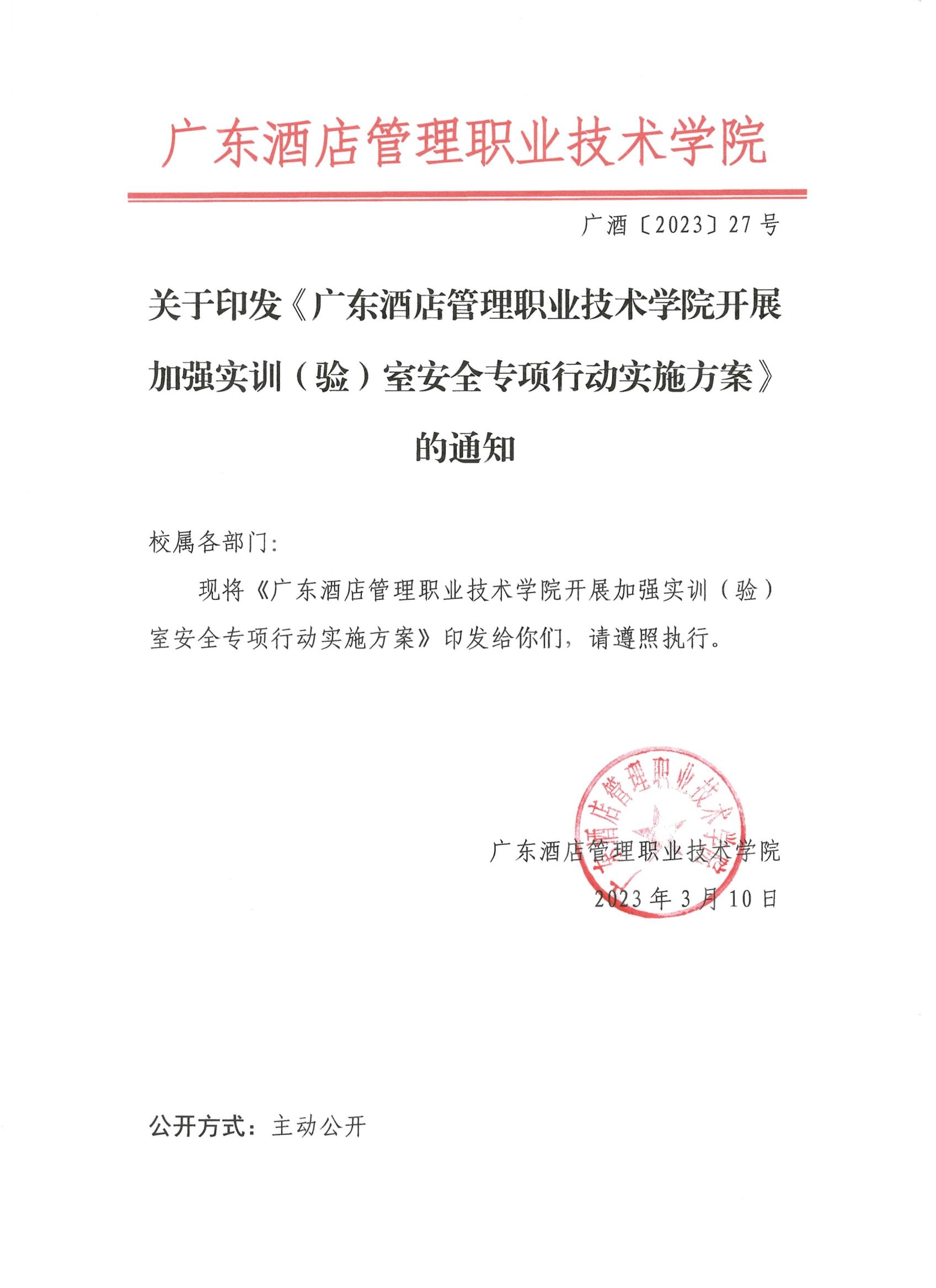 广酒202327号 关于印发《广东酒店管理职业技术学院开展加强实训(验)室安全专项行动实施方案》的通知.pdf