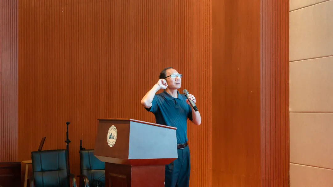 党委副书记江伟带领全体新教师面向国旗庄严宣誓,“我志愿成为一名教师。坚定信念,爱国赤诚……为实现中华民族伟大复兴而努力奋斗!”铮铮誓言表达了为党育人、为国育才的坚定决心。