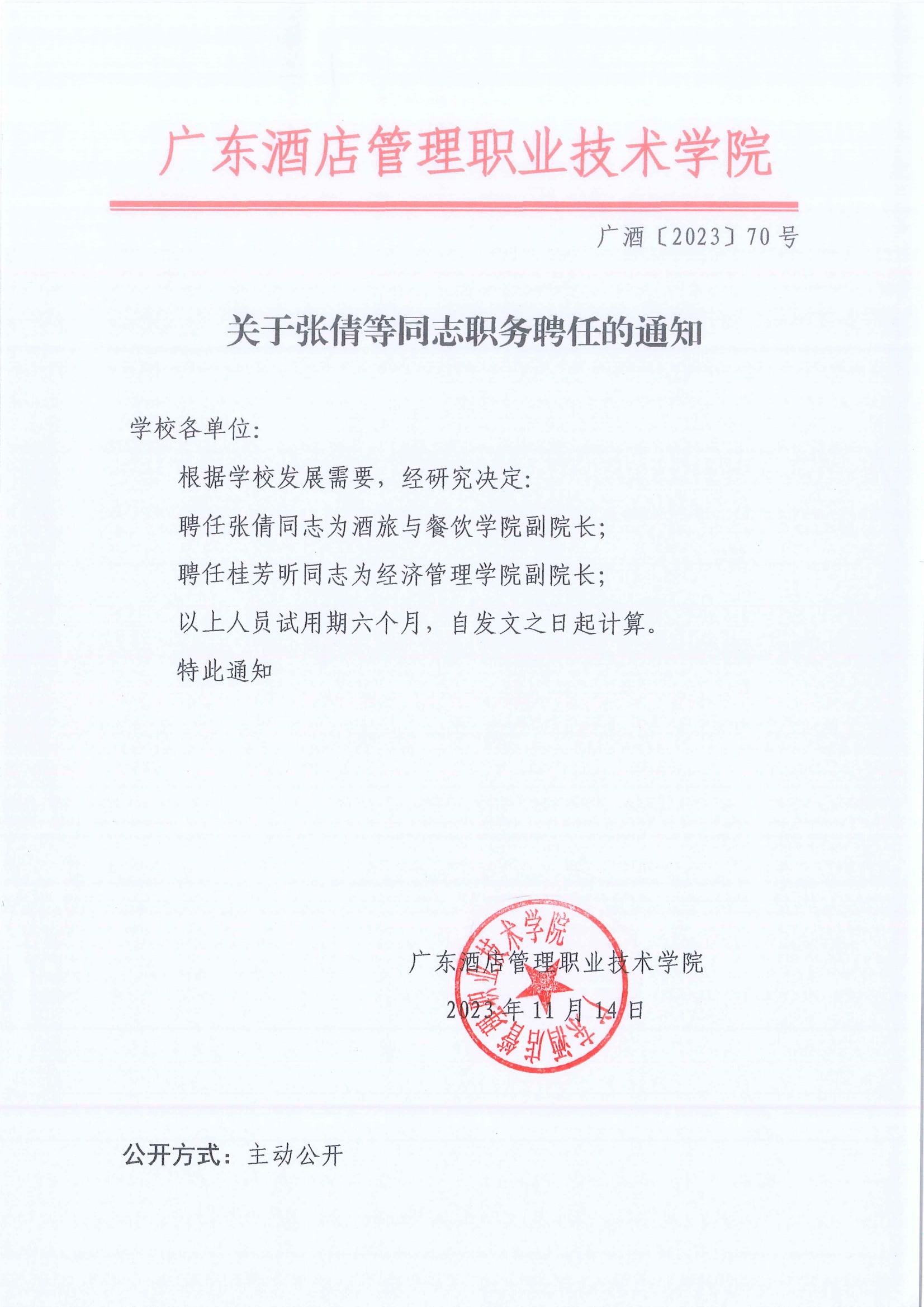 关于张倩等同志职务聘任的通知