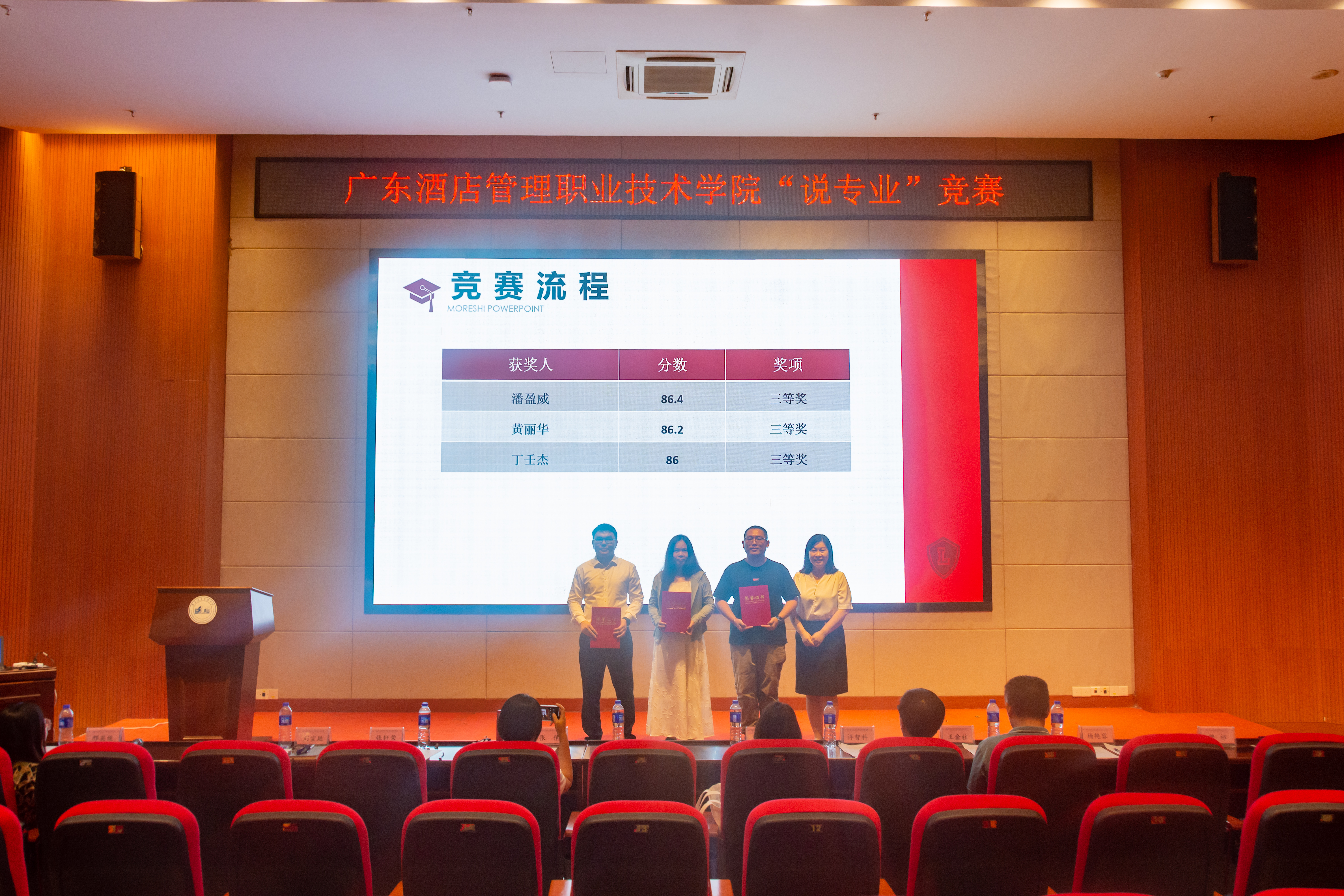 最终,经济管理学院李妙珍老师获得一等奖,康养与艺术学院史晓彤老师、经济管理学院唐智芳老师、酒旅与餐饮学院萧慧欣老师获得二等奖,酒旅与餐饮学院潘盈威老师、黄丽华老师、智能与信息工程学院丁壬杰老师获得三等奖。教师们纷纷表示本次“说专业”比赛不仅使自己对专业建设有了更深刻的认识,提升专业剖析能力,更是一次学习与交流的机会,他们将继续专注于教研教学,提升专业建设水平。
