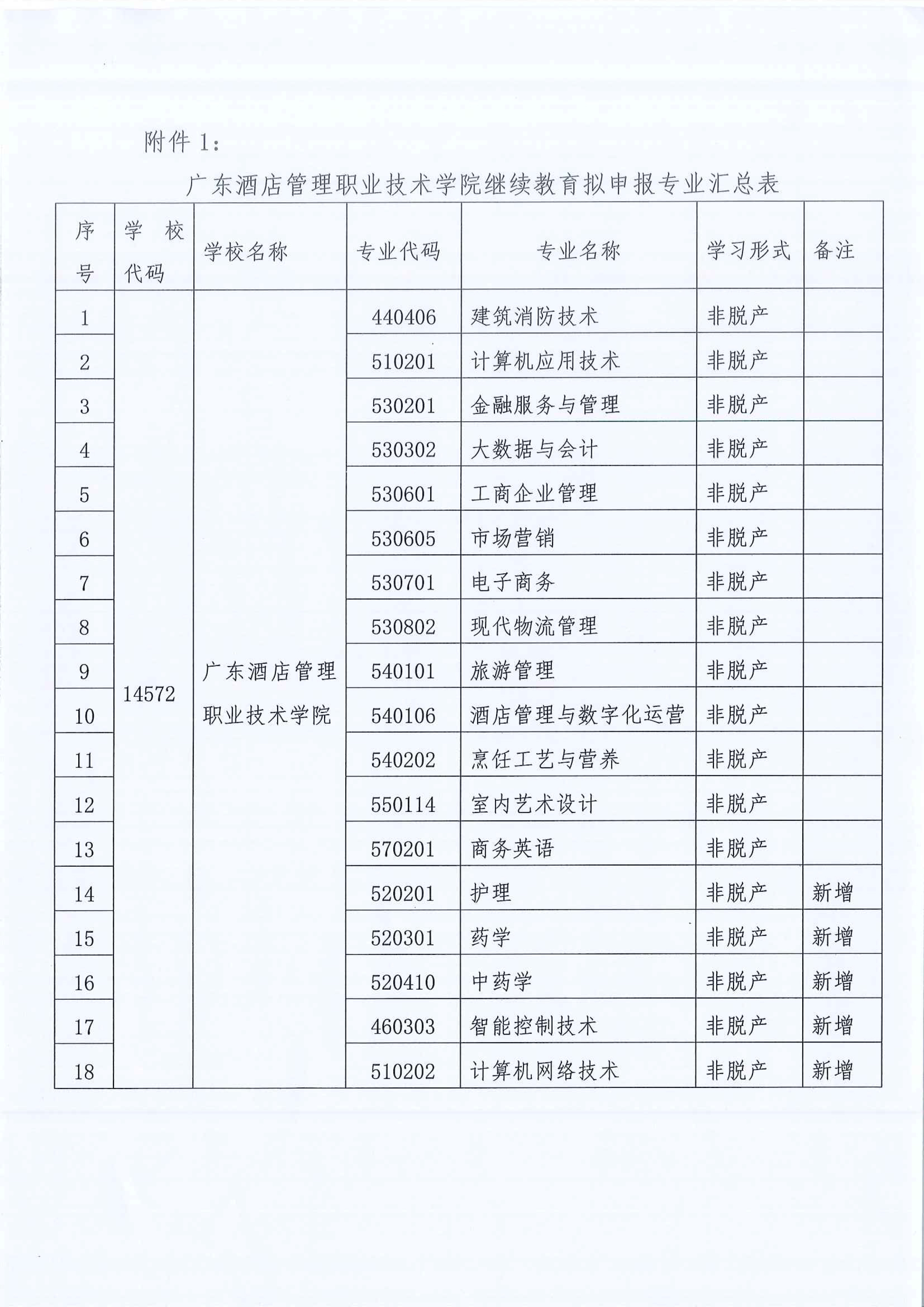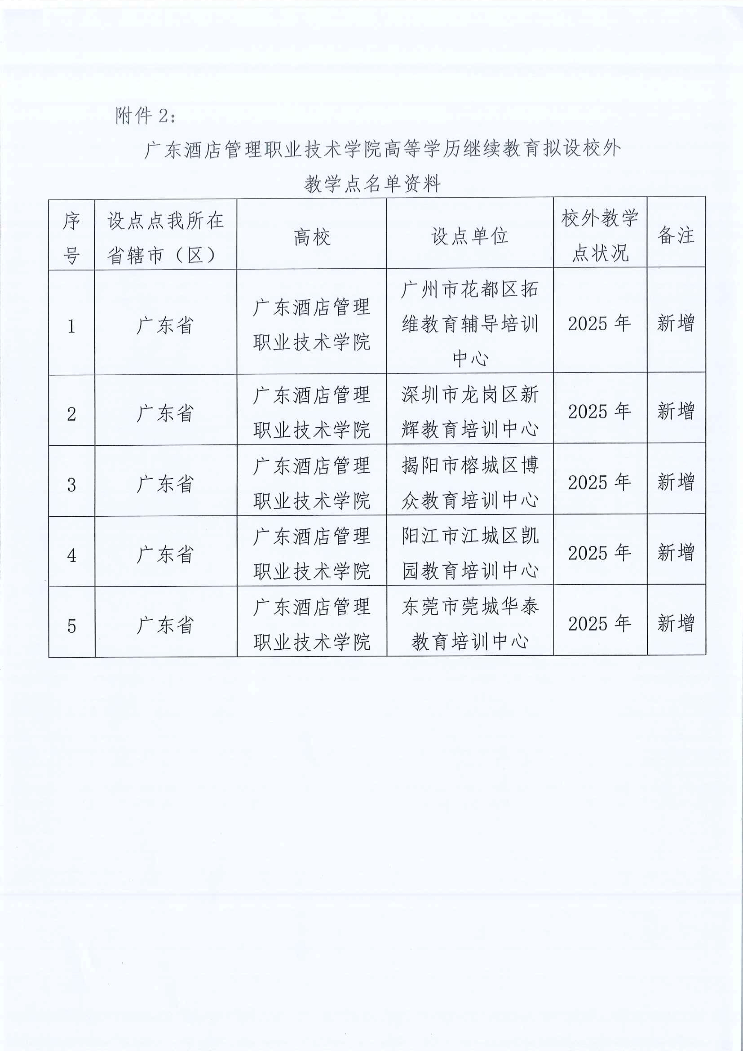 广东酒店管理职业技术学院高等学历继续教育2025年拟设专业和校外教学点名单公示